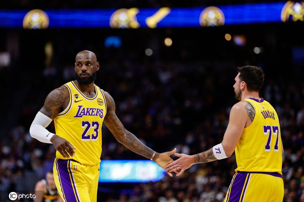 湖人队首发:卢卡-东契奇、勒布朗-詹姆斯、奥斯汀-里夫斯、马库斯-斯马特、德安德烈-艾顿